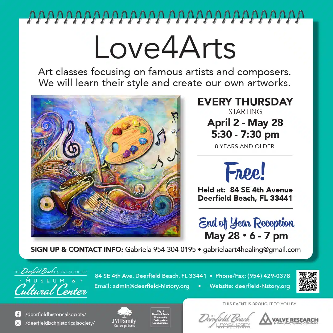 FREE Kindness Rock Painting Deerfield Beach Historical Society Museum and Cultural Center Apr 6, 2026 at 5:00pm - 7:00pm We will be painting this month for Earth Day and Autism Awareness Month. All of the rocks will be spread throughout the Deerfield Beach community. This Event is FREE All supplies are included Community Service Hours... |